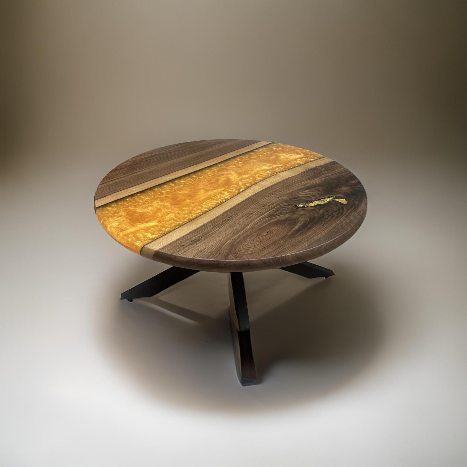 Dieser runde Couchtisch aus Schweizer Nussbaum besticht durch seine hohe Qualität und das Epoxidharz-Einsatz, welches für einen einzigartigen Look sorgt. Mit einem Durchmesser von 100 cm bietet er ausreichend Platz für Getränke und Snacks und ist somit perfekt für gemütliche Abende mit Freunden oder Familie.